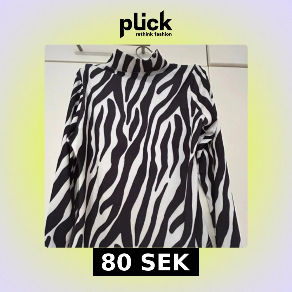 Säljer en svartvit zebramönstrad polotopp från Nama i storlek M. Toppen har lång ärm, hög krage och dragkedja i ryggen. Materialet är stretchigt och känns mjukt mot huden. Perfekt för dig som vill sticka ut med ett djurmönster.