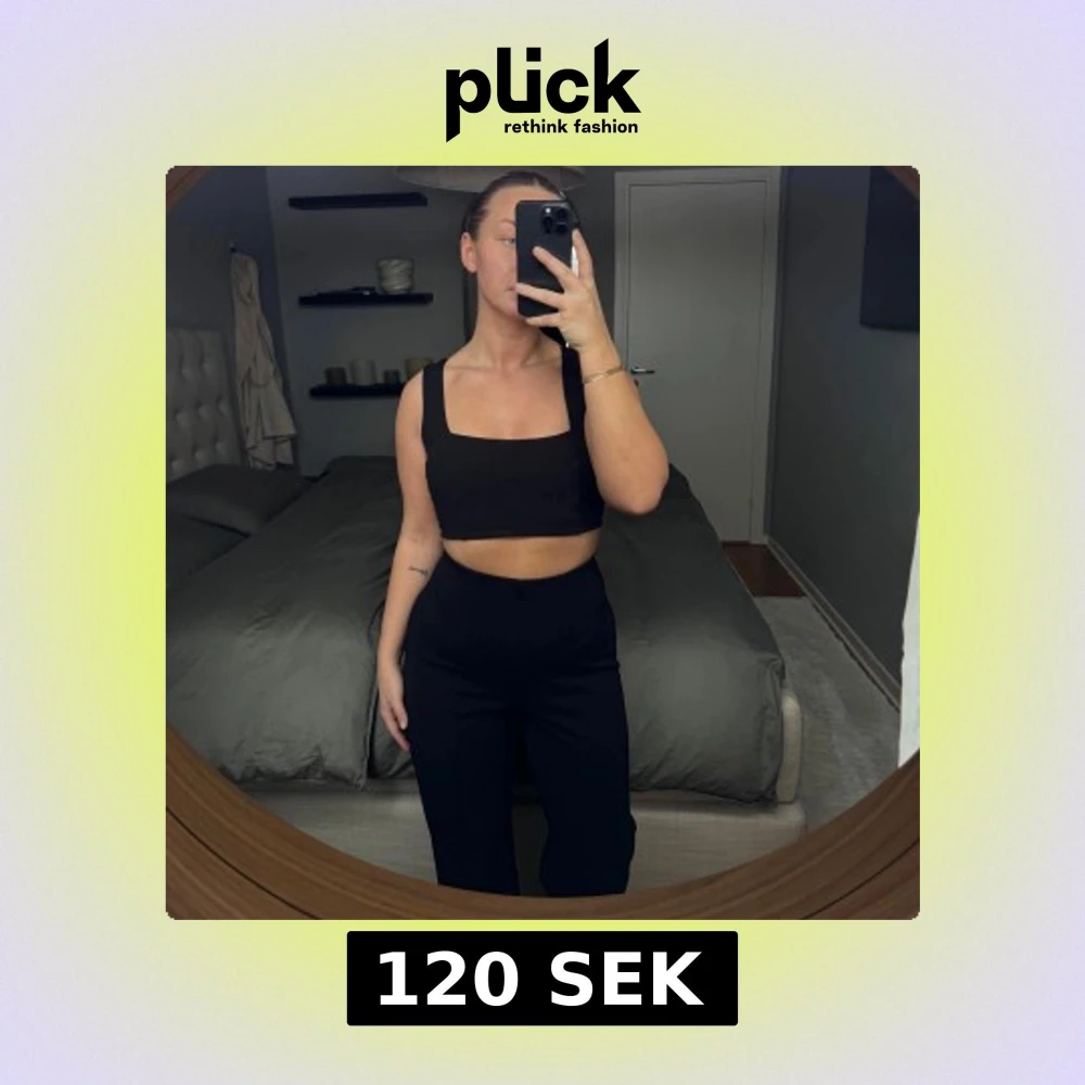 Snygg svart croppad linnetopp från Nly One. Toppen har en stilren design med breda axelband och en fyrkantig urringning. Perfekt för en trendig look. Aldrig använd och normal i storleken