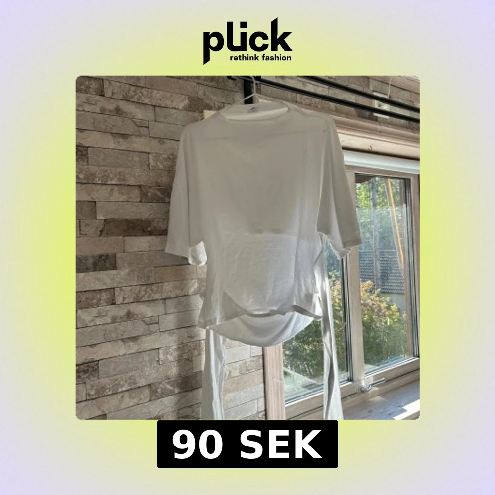 Säljer en vit omlottopp med knytband i midjan och korta ärmar. Toppen har en avslappnad passform och är tillverkad i mjukt bomullstyg. Perfekt för dig som gillar minimalistisk och clean stil.