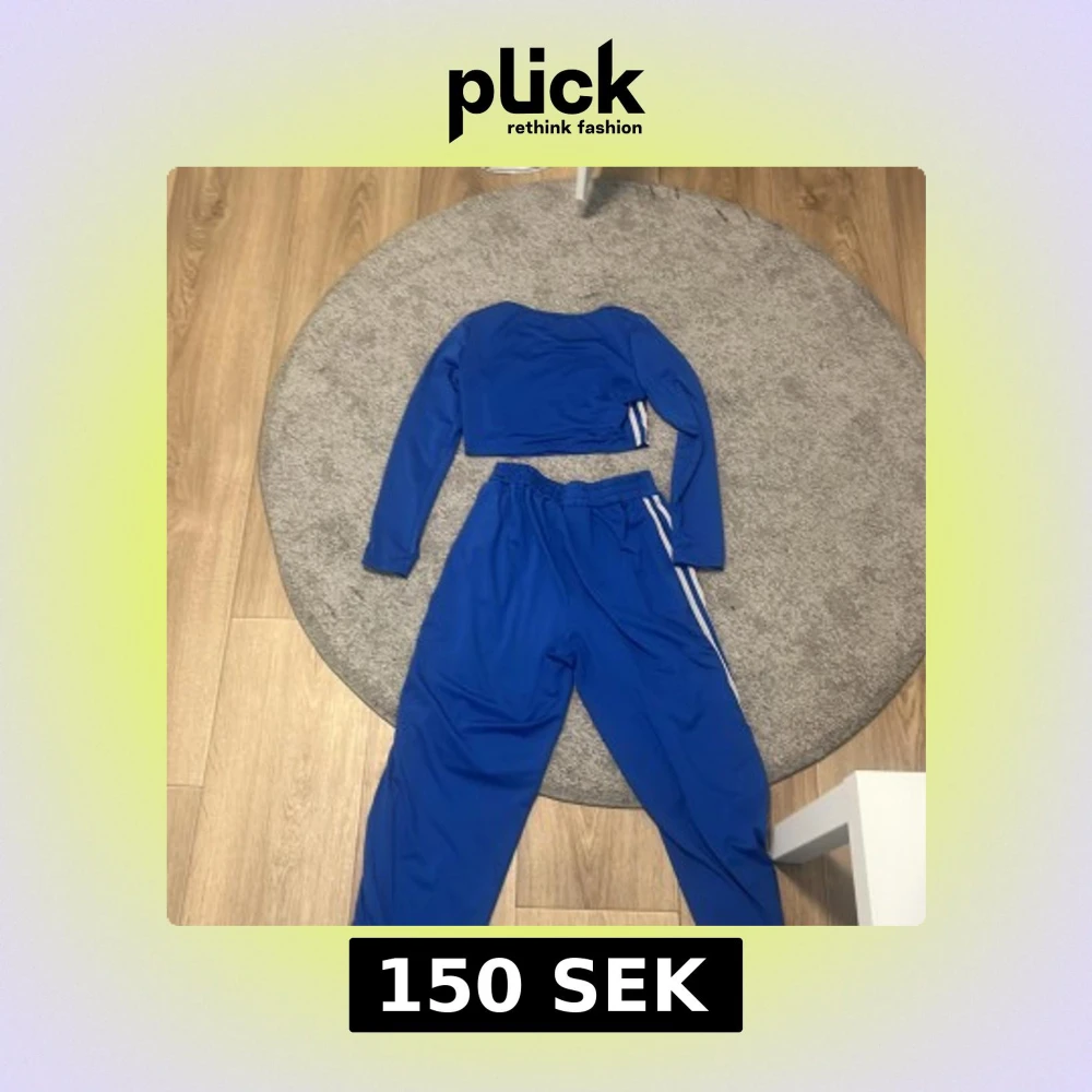 Säljer en blå croppad långärmad topp från Shein med vita ränder längs ärmarna. Toppen har en sportig vibe och är tillverkad i ett stretchigt syntetmaterial som passar perfekt till träning eller chill. Matcha med byxor för en komplett look!