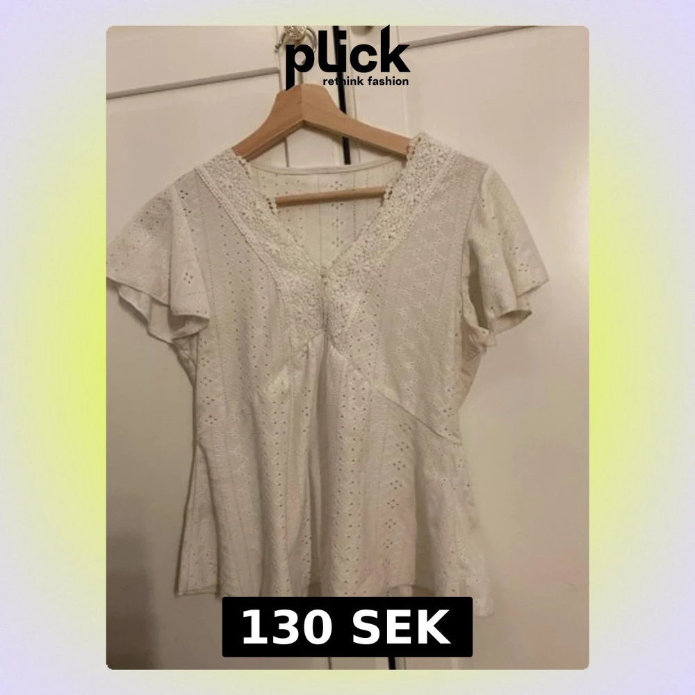 Söt vit blus med v-ringning och spetsdetaljer använd några gånger