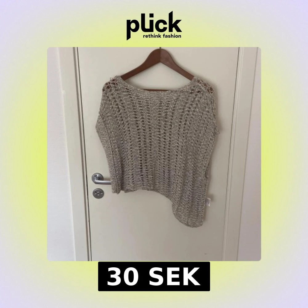 Säljer en beige stickad topp med grovt hålmönster och croppad passform. Toppen har en avslappnad, loose siluett och är perfekt för lager-på-lager. Den är ärmlös och har en snygg asymmetrisk nederkant.