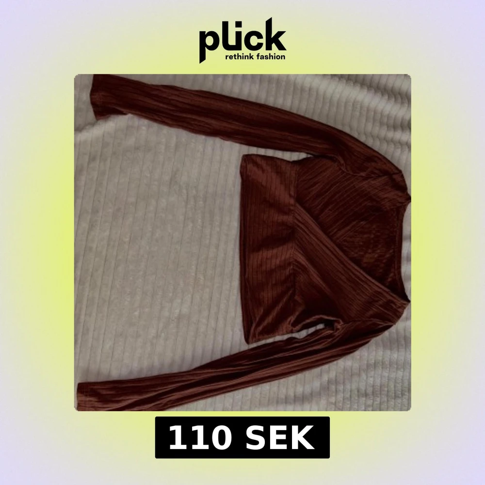 Säljer en brun omlottopp med lång ärm. Toppen har en croppad passform och är tillverkad i ett glansigt, ribbat material. Perfekt för dig som gillar trendiga och stilrena plagg.