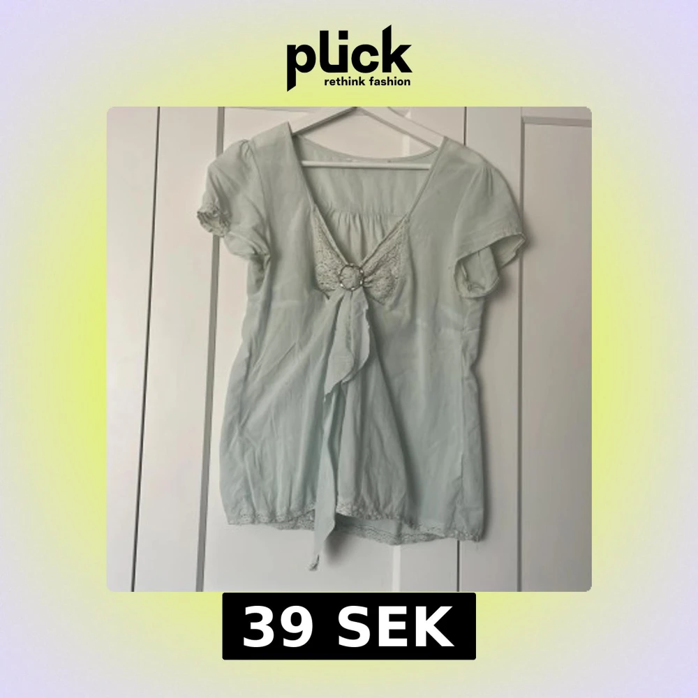 Ljusblå blus med spets och ringdetalj