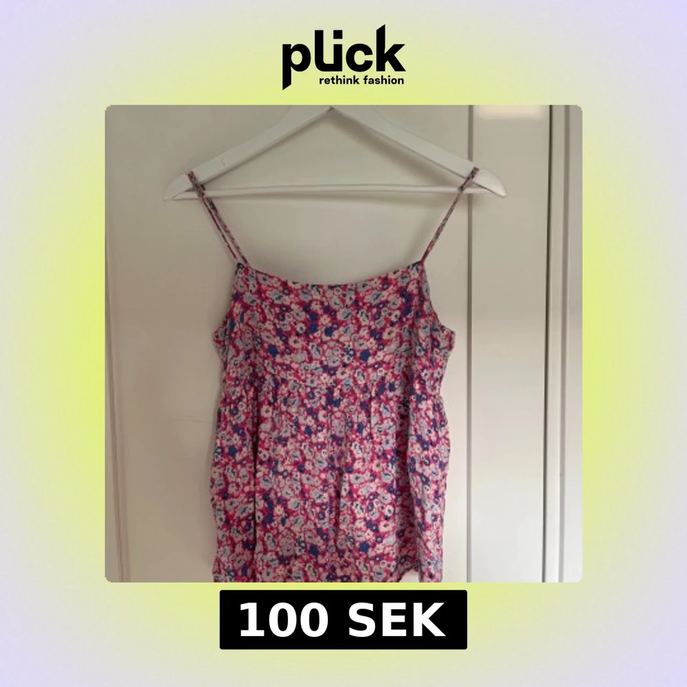 Supersöt linnetopp från Levate Room med blommigt mönster i rosa, blått och vitt. Tunt och luftigt material, smala axelband och smockad rygg för extra komfort.