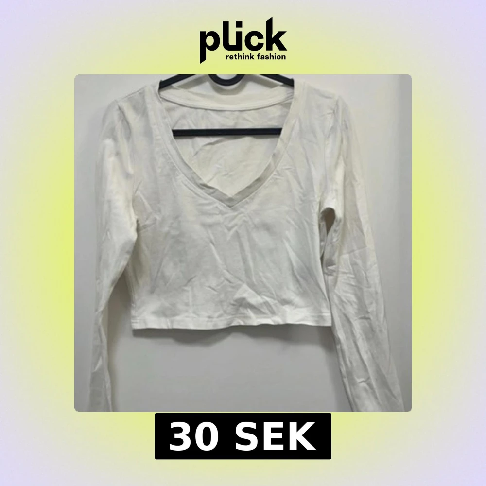 Säljer en enkel och stilren vit croppad topp med lång ärm och djup v-ringning. Perfekt att matcha med jeans eller kjol för en clean look. Toppen är i mjuk bomull och passar till många olika outfits.