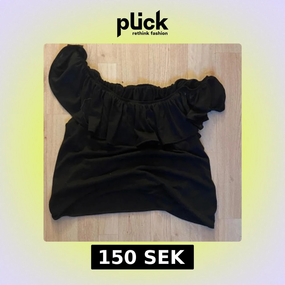 Snygg svart offshoulder topp med bred volang runt hela överdelen. Perfekt för dig som gillar en trendig och feminin stil. Toppen är ärmlös och har en elastisk kant upptill som håller den på plats.
