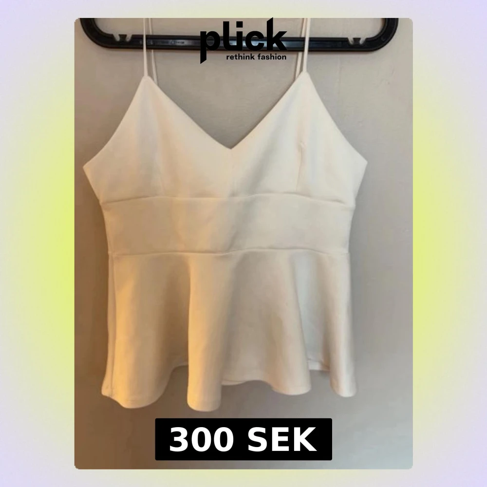 Snygg vit linnetopp med smala axelband och v-ringning. Toppen har en markerad midja och peplumformad nederdel som ger en feminin siluett. Perfekt att styla med jeans eller kjol för en trendig look.