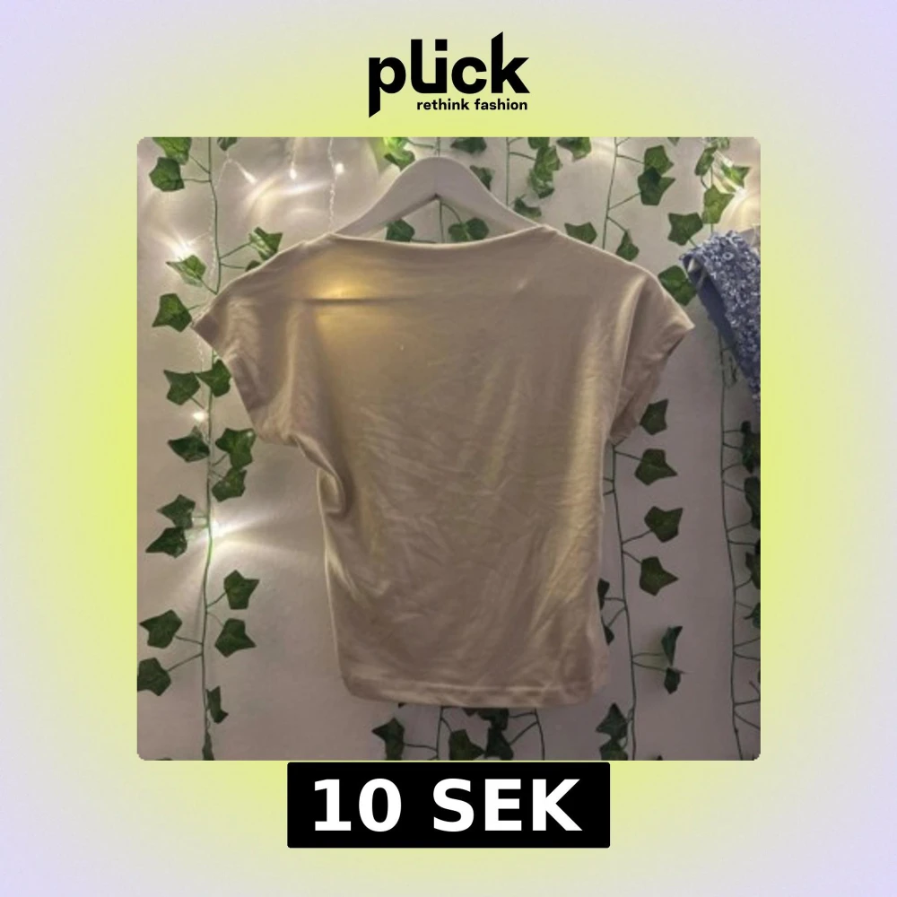 Säljer en beige croppad topp med korta ärmar och en stor öppen rygg. Toppen har en enkel och clean look framtill och ett elastiskt band nedtill på ryggen för en snygg passform. Perfekt för dig som gillar minimalistisk stil.