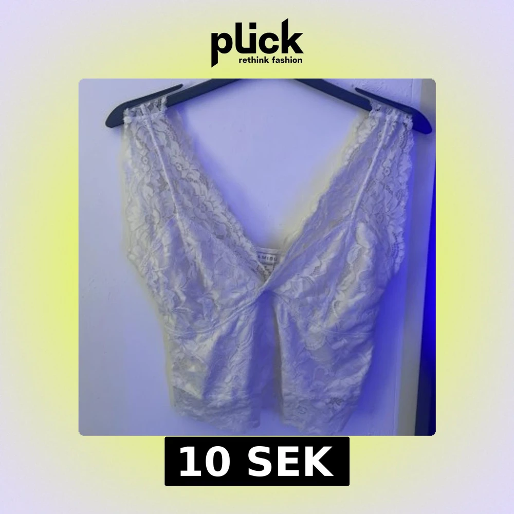Supersöt vit linnetopp från Amisu i genombruten spets med blommigt mönster. Djup v-ringning både fram och bak, ärmlös och croppad passform. Perfekt att styla med jeans eller kjol för en trendig look.