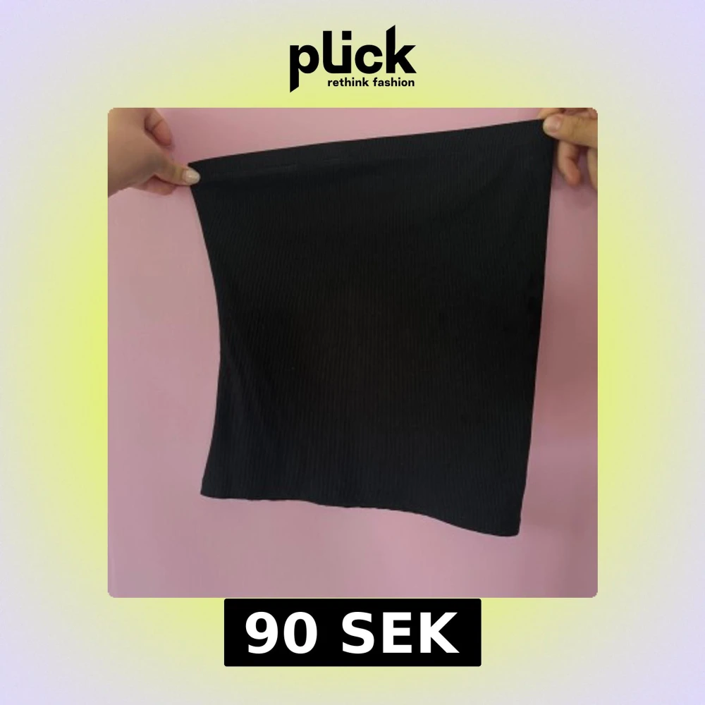 En enkel svart ribbad tubtopp i stretchigt material. Perfekt att styla med jeans eller kjol för en clean look. Toppens raka form och avsaknad av axelband ger en minimalistisk känsla.