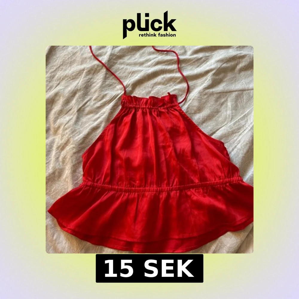 Snygg röd topp med volangkant och smala knytband i nacken. Toppen har en luftig passform och är gjord i ett glansigt, mjukt material som känns lyxigt. Perfekt för dig som vill sticka ut med en färgstark och trendig look.