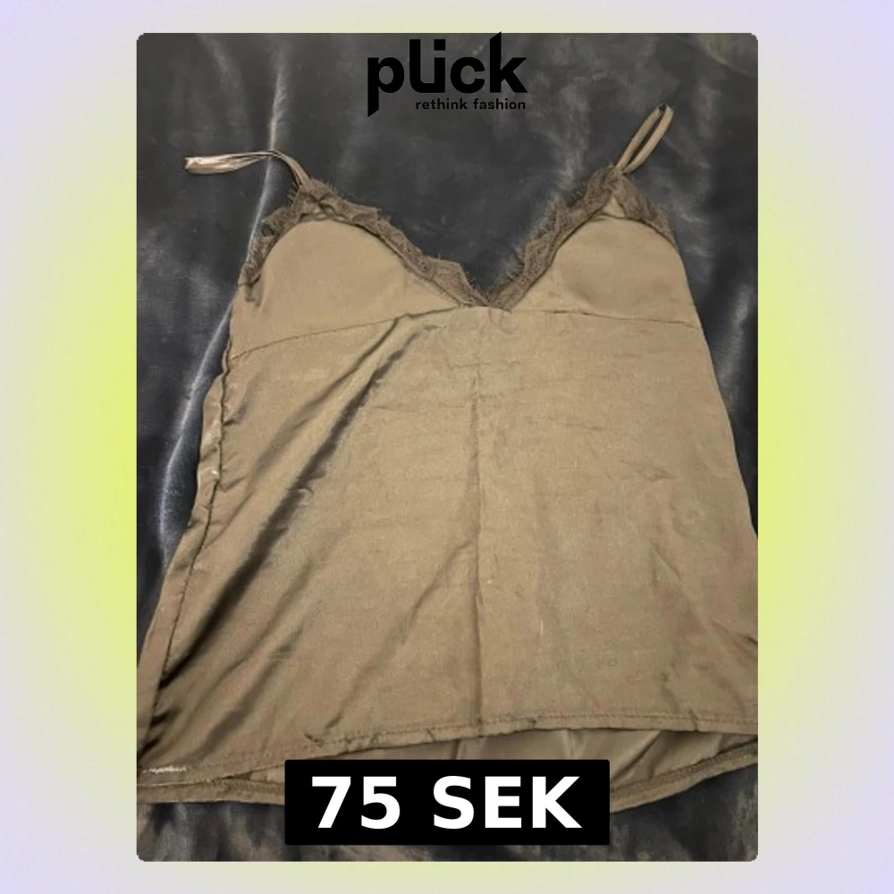 Säljer en svart linnetopp i satin med tunna justerbara axelband och dekorativ spets längs v-ringad halsringning. Toppen har en glansig finish och är ärmlös, perfekt för att styla med jeans eller kjol. Spetsdetaljerna ger en extra touch av elegans.