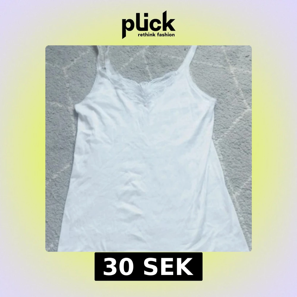 Säljer ett vitt linne med smala axelband och vacker spetsdetalj vid halsringningen. Perfekt för varma sommardagar eller som ett lager under andra plagg. I storlek M.