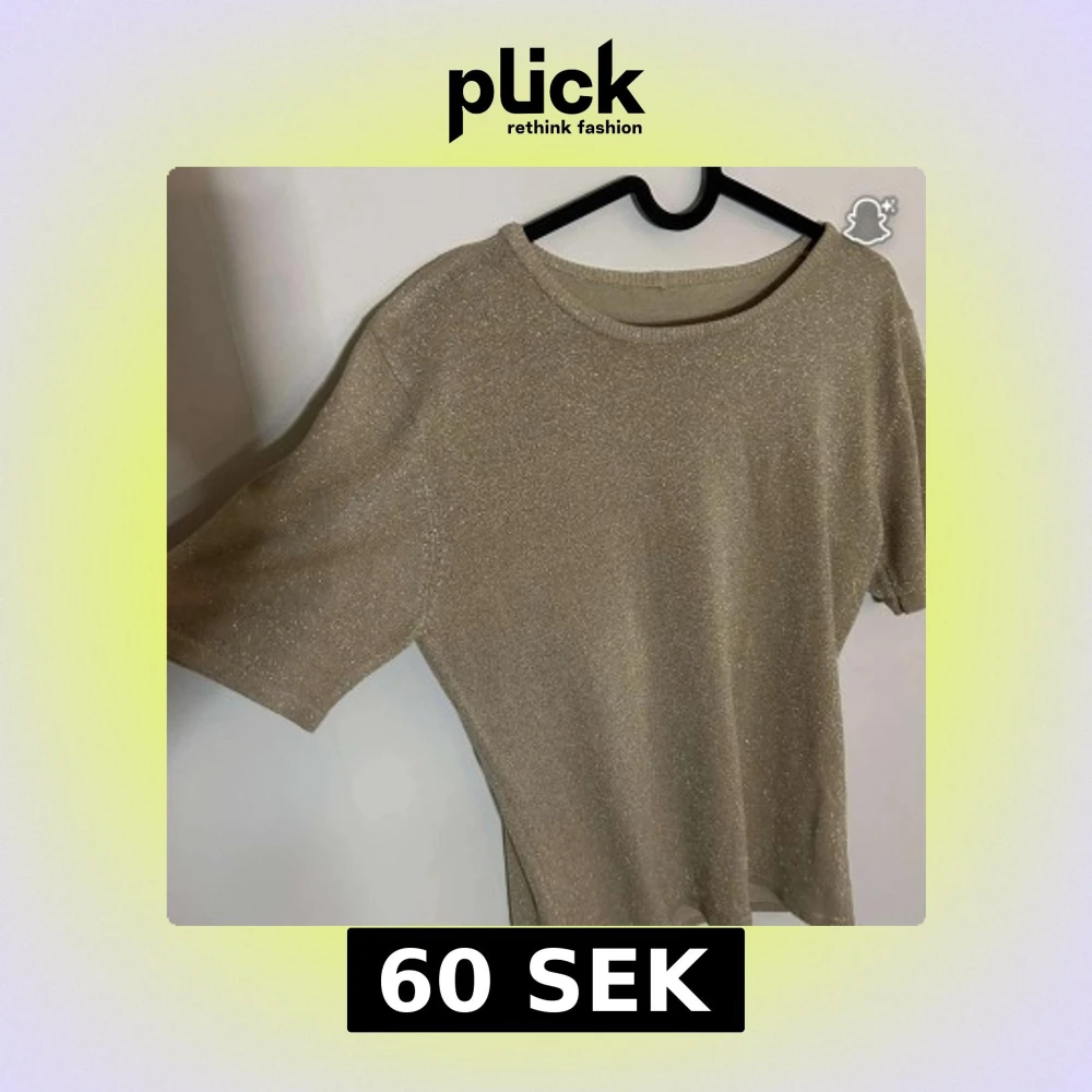 Snygg guldig topp med glittrigt tyg och korta ärmar. Perfekt för dig som vill sticka ut lite extra med en enkel men ändå festlig look. Rund halsringning och mjukt material som känns skönt mot huden.