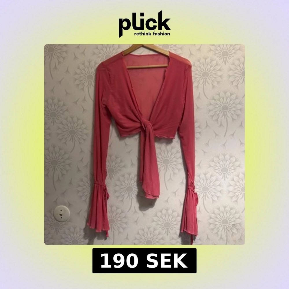 Snygg rosa blus med knyt framtill och långa ärmar. Blusen har volangdetaljer vid ärmsluten och en croppad passform. Perfekt för en trendig look.