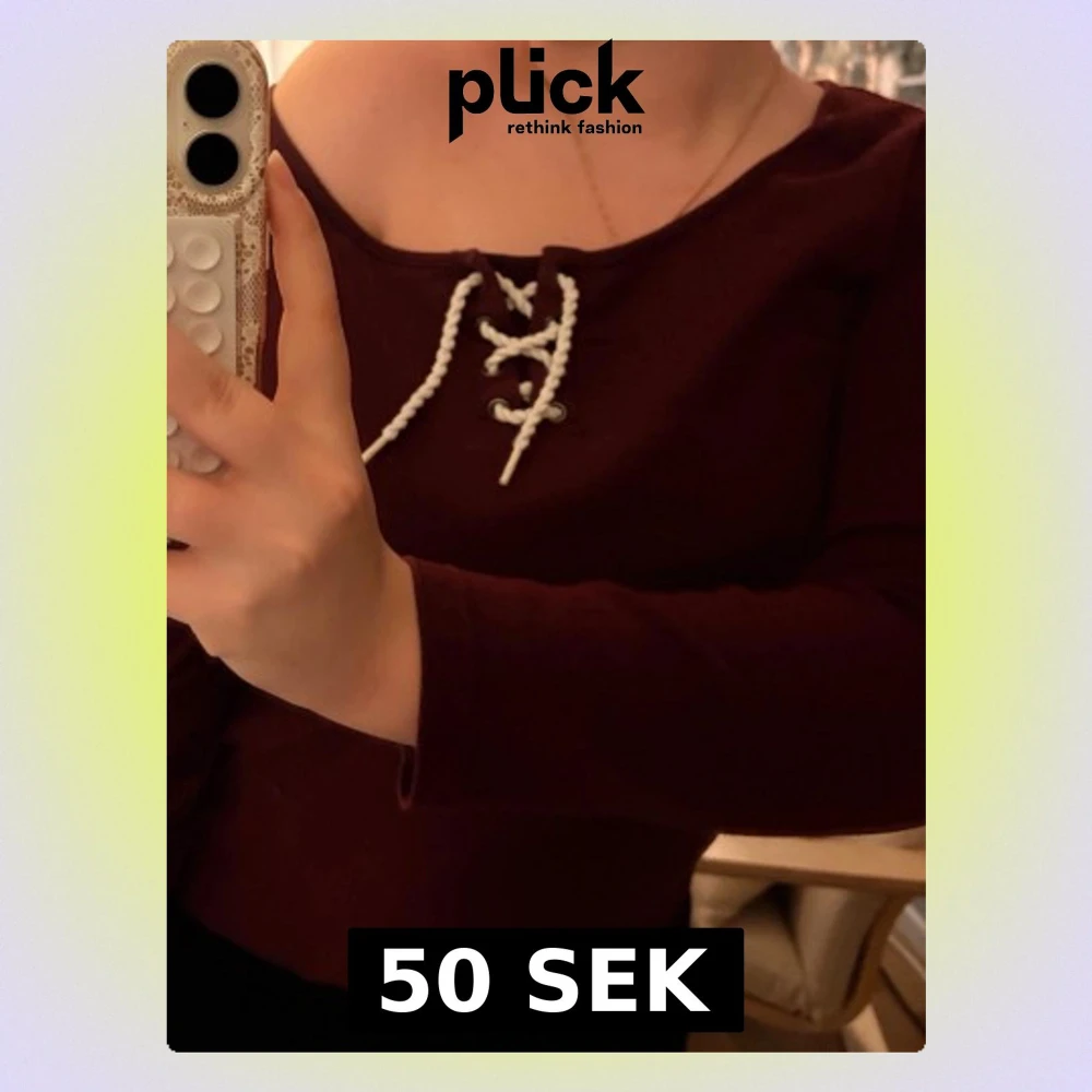 Vinröd långärmad topp med snygg snörning framtill vid halsen. Toppen har en offshoulder-design och är tillverkad i ett mjukt bomullsliknande material. Perfekt för dig som vill ha en trendig men även vintage look.💞