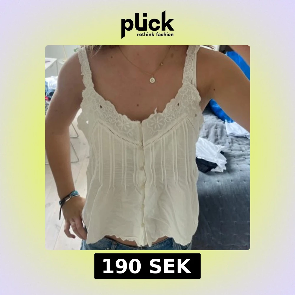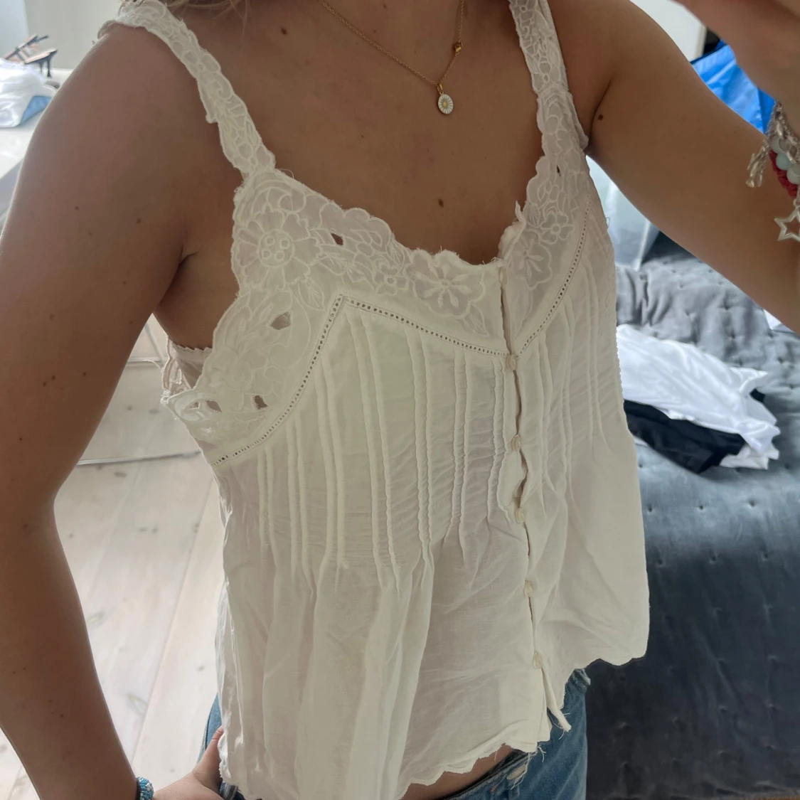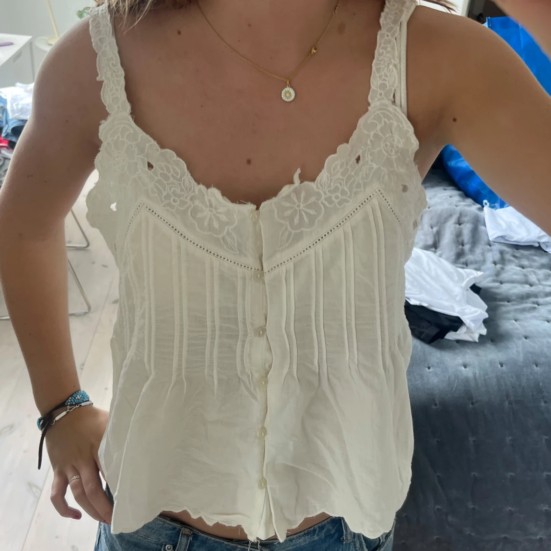 Supersöt vit linnetopp med broderade spetsdetaljer och blommönster!!