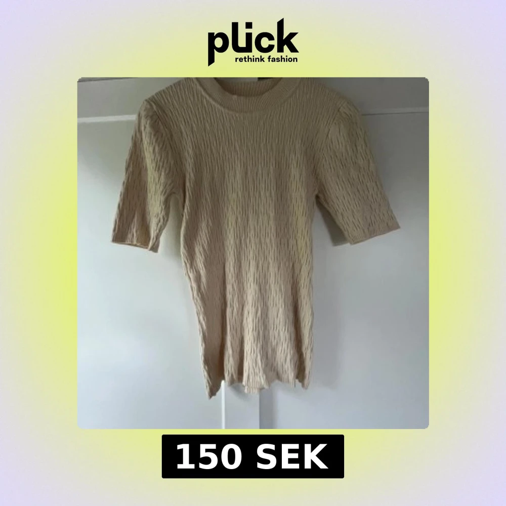 Säljer en beige ribbad topp från Selected Femme. Toppen har en rund halsringning, korta ärmar och en strukturerad, stretchig känsla💗