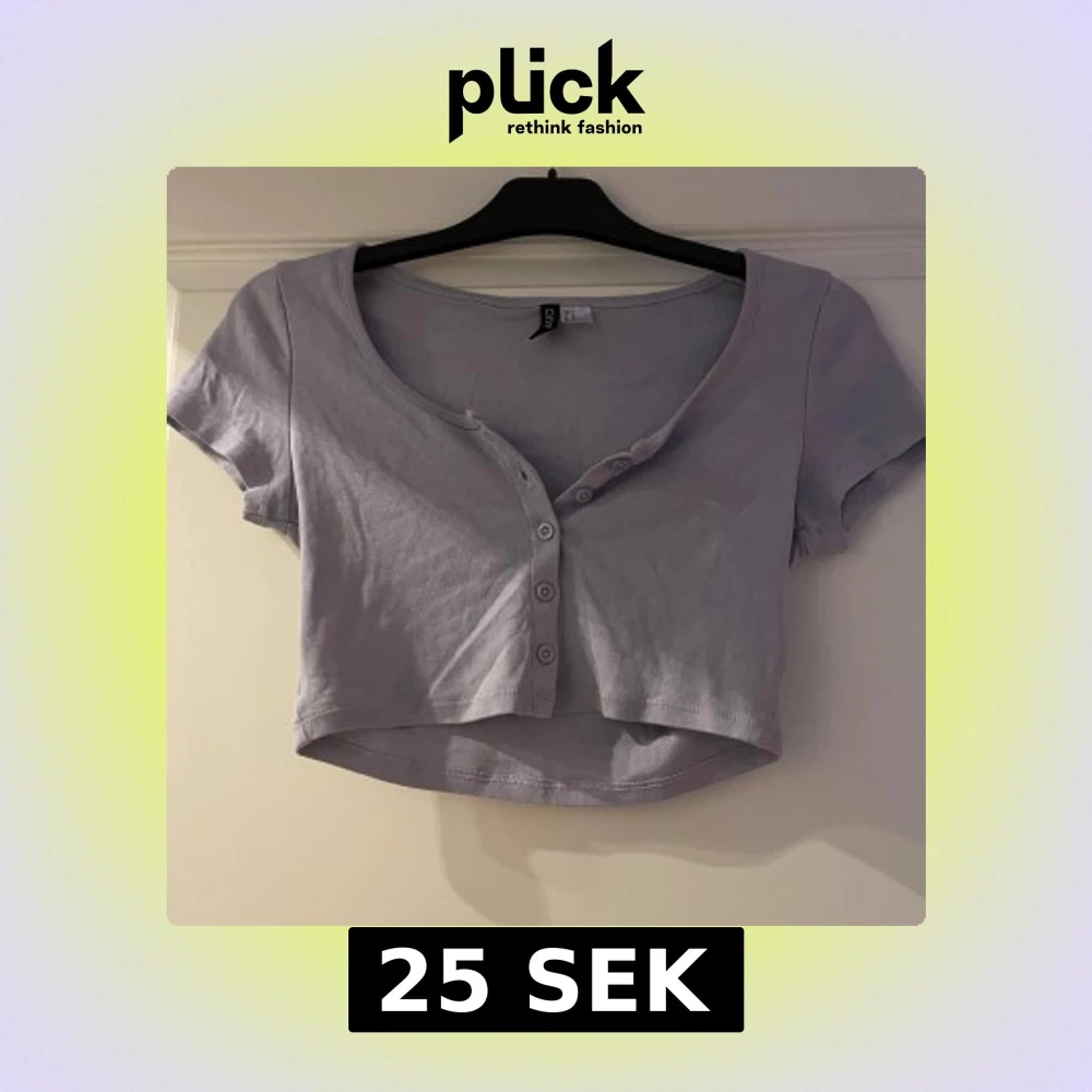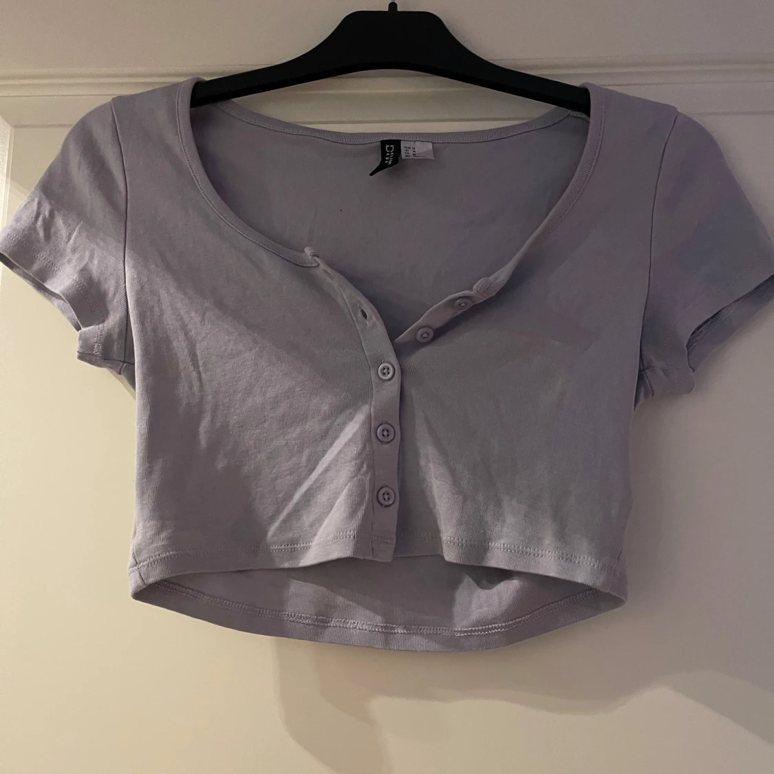 Säljer en ljuslila croppad topp från H&M. Toppen har korta ärmar och knappar framtill.