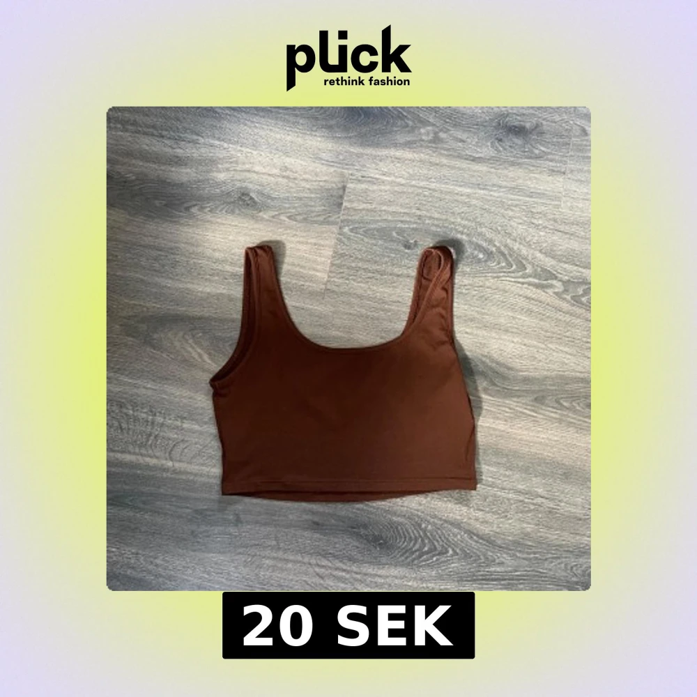Snygg brun croppad linnetopp med breda axelband och rundad halsringning. Perfekt att styla med höga jeans eller kjol för en trendig look. Enkel och stilren design som passar till många outfits.