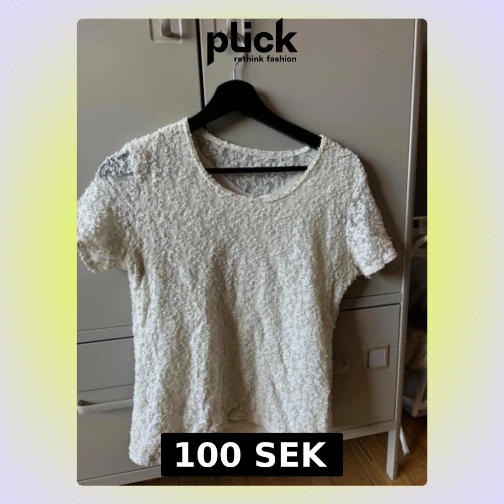 Säljer en söt vit blus med kort ärm och rund halsringning. Har använts en del därav lågt pris. Finns ingen lapp så vet ej var den är ifrån. Troligen storlek M