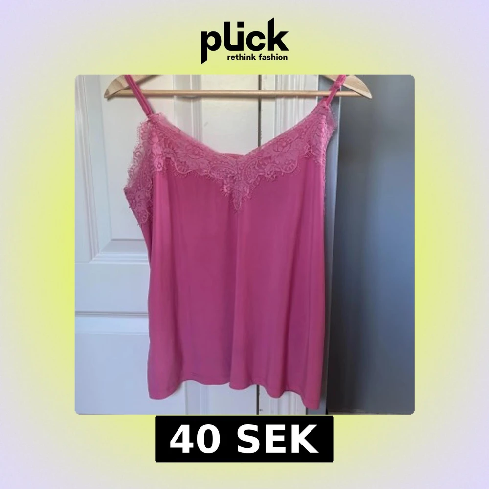 Supersöt rosa linnetopp från Amisu med tunna axelband och v-ringning dekorerad med spets. Toppens material är mjukt och lätt, perfekt för varma dagar. Spetsdetaljerna ger en extra touch och axelbanden är justerbara för bästa passform.