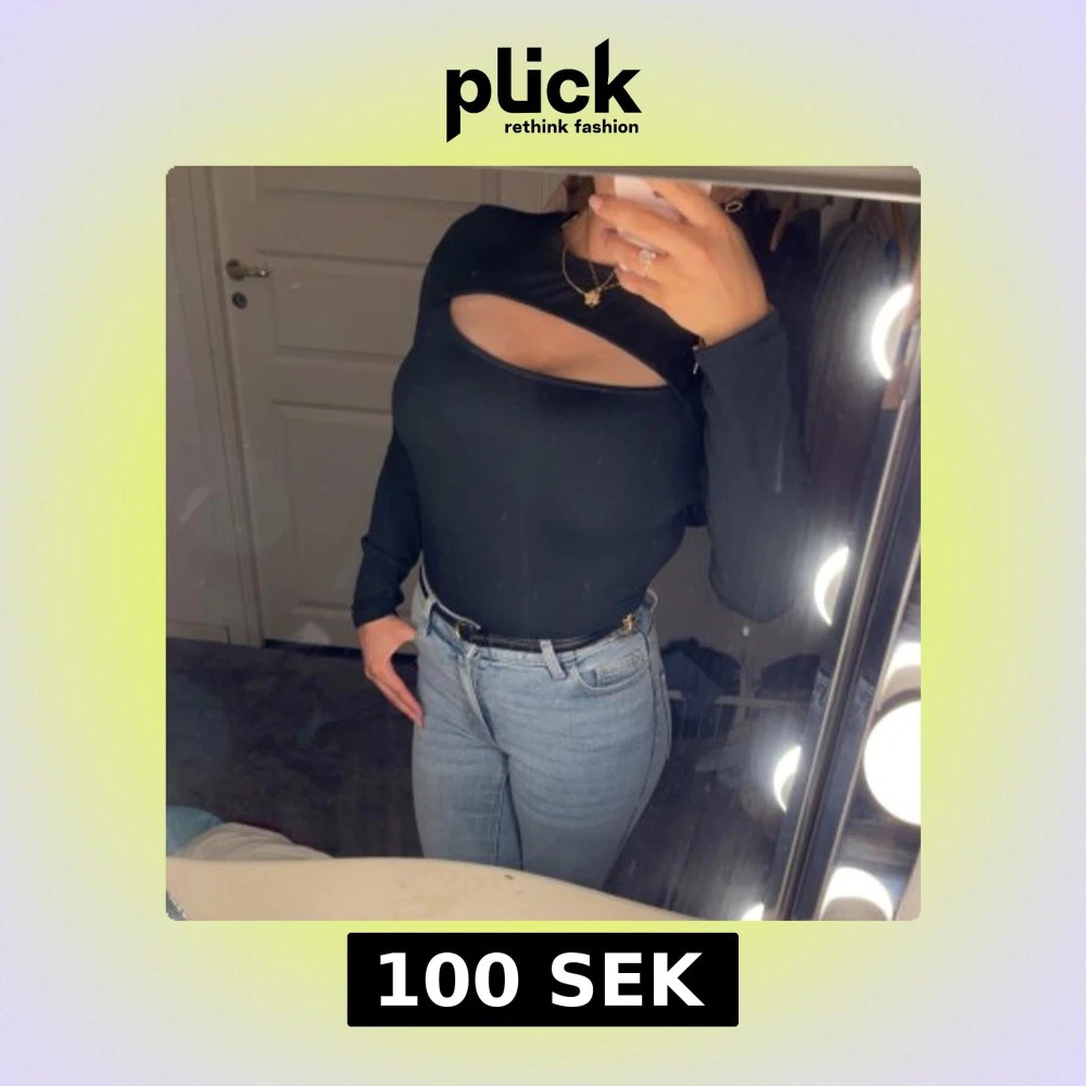 Säljer en svart långärmad topp med en snygg cut-out detalj över bröstet. Toppen är tight och har en stilren design som passar perfekt till jeans eller kjol. Materialet känns mjukt och stretchigt.