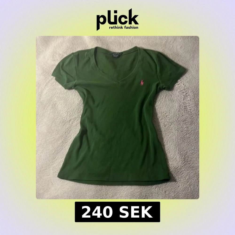 Säljer en grön t-shirt från Ralph Lauren Sport med v-ringning och rosa broderad logga på bröstet. T-shirten är i 100% bomull och har en tight passform med korta ärmar. (Köpare står för frakt)