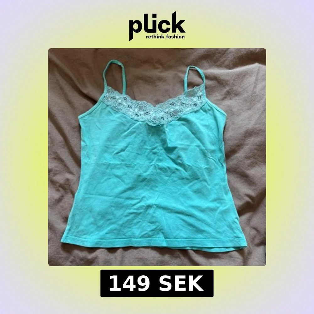 Supersöt turkos linnetopp med tunna axelband och vacker spetsdetalj längs urringningen.❤️ Perfekt för varma dagar eller som layering-piece. Mjuk och skön, lätt att matcha med jeans eller kjol. Storlek M men passar även mig med S!😍