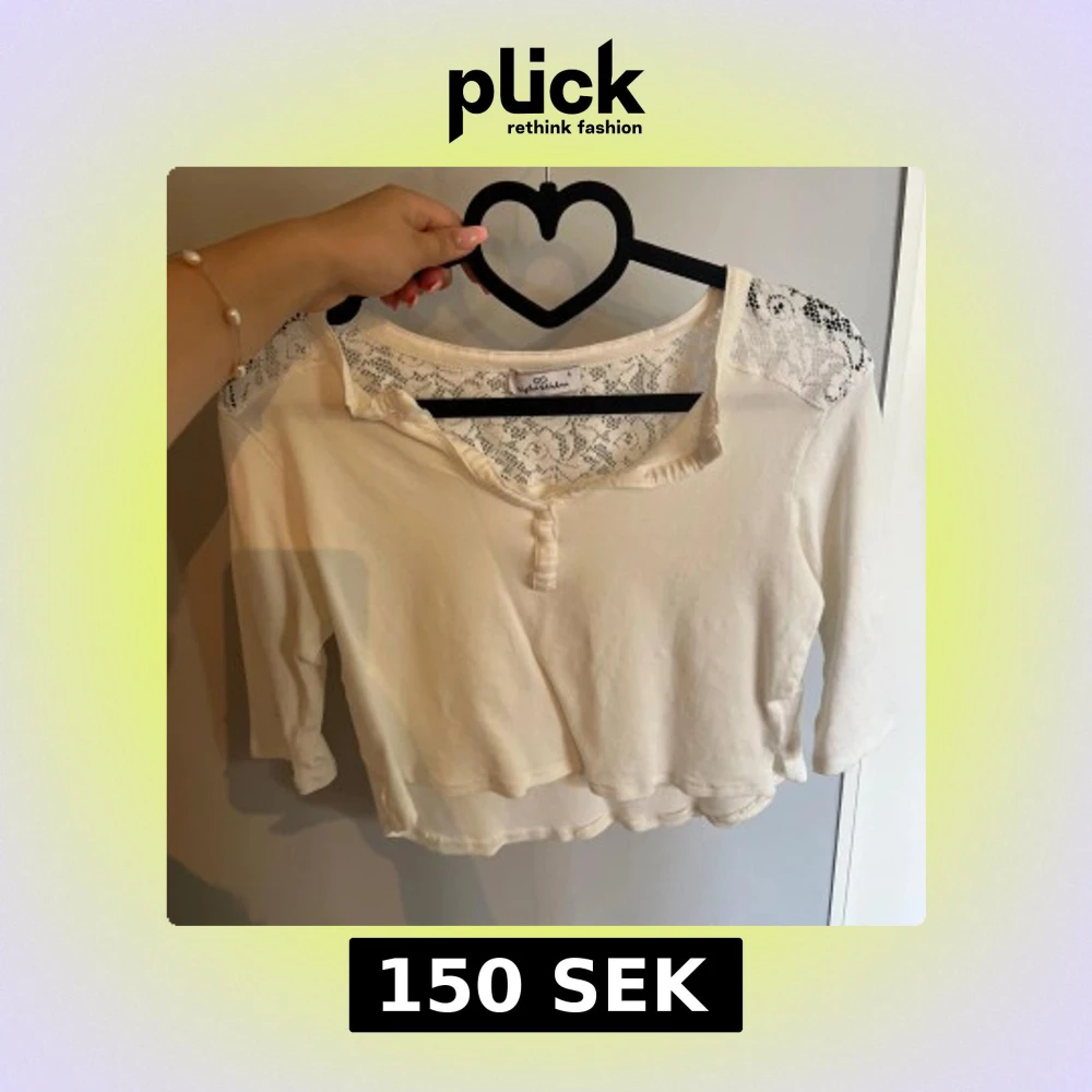 Supersöt vit croppad blus från Reflektion med spets över axlar och rygg. Toppen har trekvartsärm, liten knapp framtill och en flowy, avslappnad passform. Perfekt för dig som gillar romantiska detaljer och en feminin vibe. Storlek: L men passar som xs och S