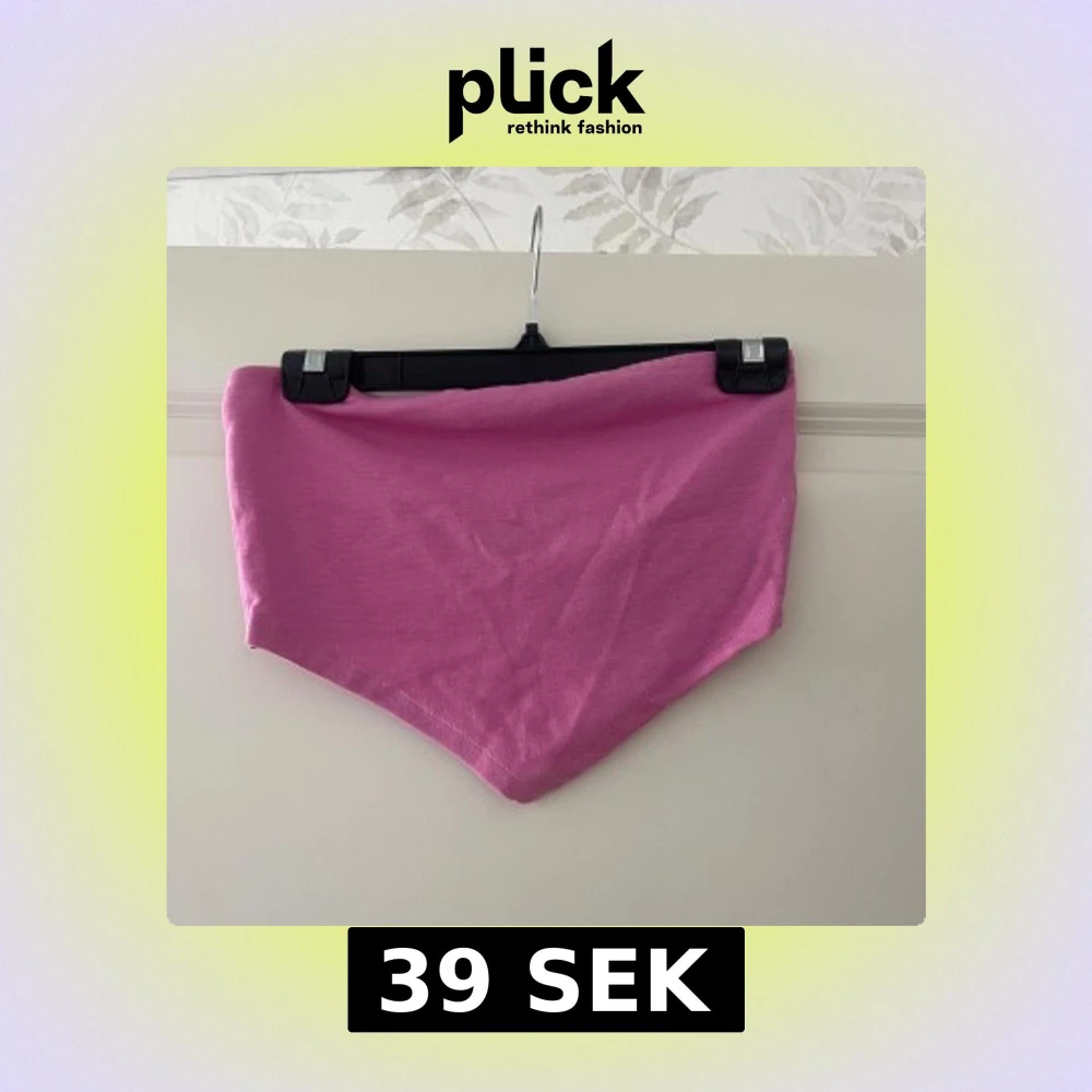 Säljer en rosa bandeau tubtopp med spetsig nederkant. Toppen är ärmlös och har en enkel, stilren design i stretchigt bomullsmaterial. Perfekt för att skapa en trendig look till sommaren.