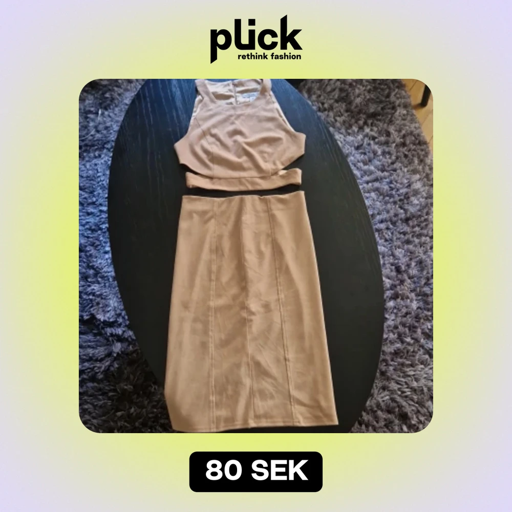 Tvådelat set med kjol och topp. Mockamaterial, stretchigt