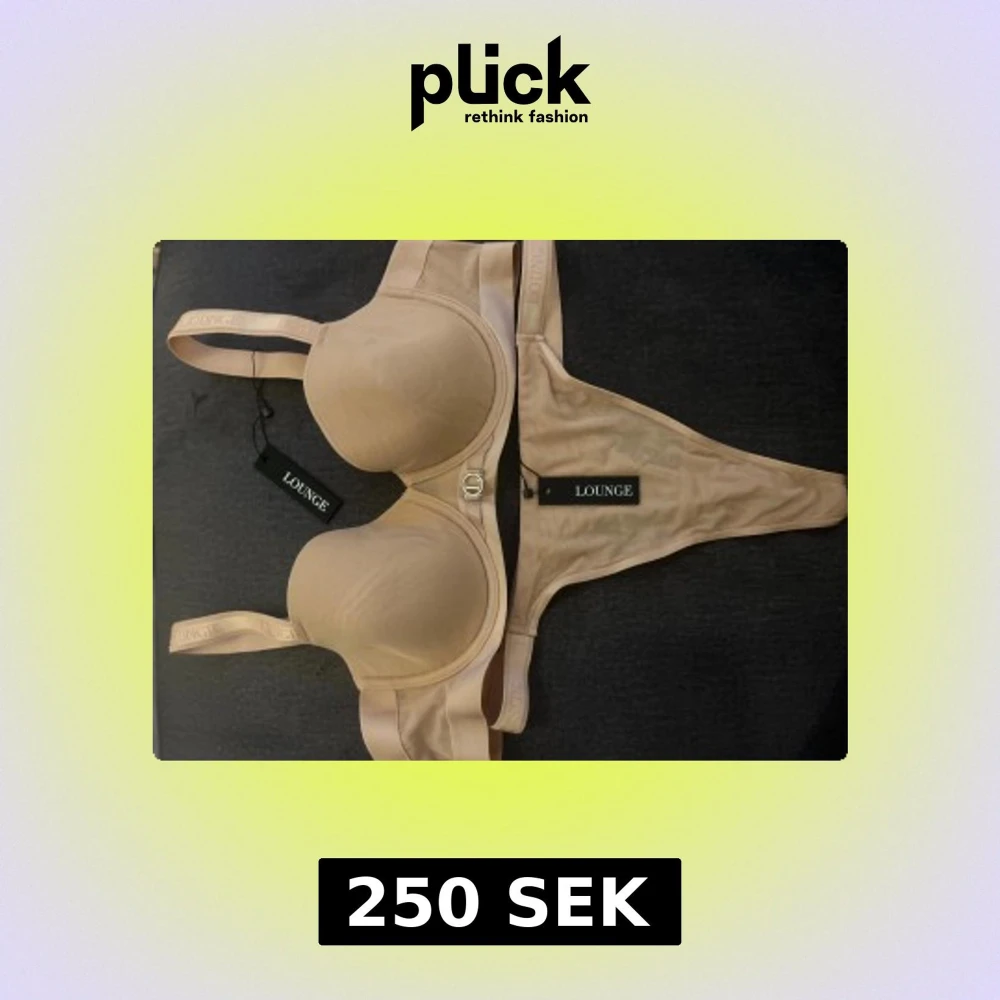 Säljer en beige mesh bh 85b från Lounge med stringtrosa. Bh har slät yta, lätt vadderade kupor och snygga metallspännen framtill. Materialet är mjukt och stretchigt, perfekt för en chill look.