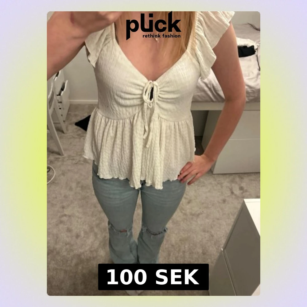 Vit topp med knyt fram och volanger nedtillđ Tveka inte att skriva om du Ă€r intresserad eller vill ha fler bilder. Pris kan diskuterasâ€ïž