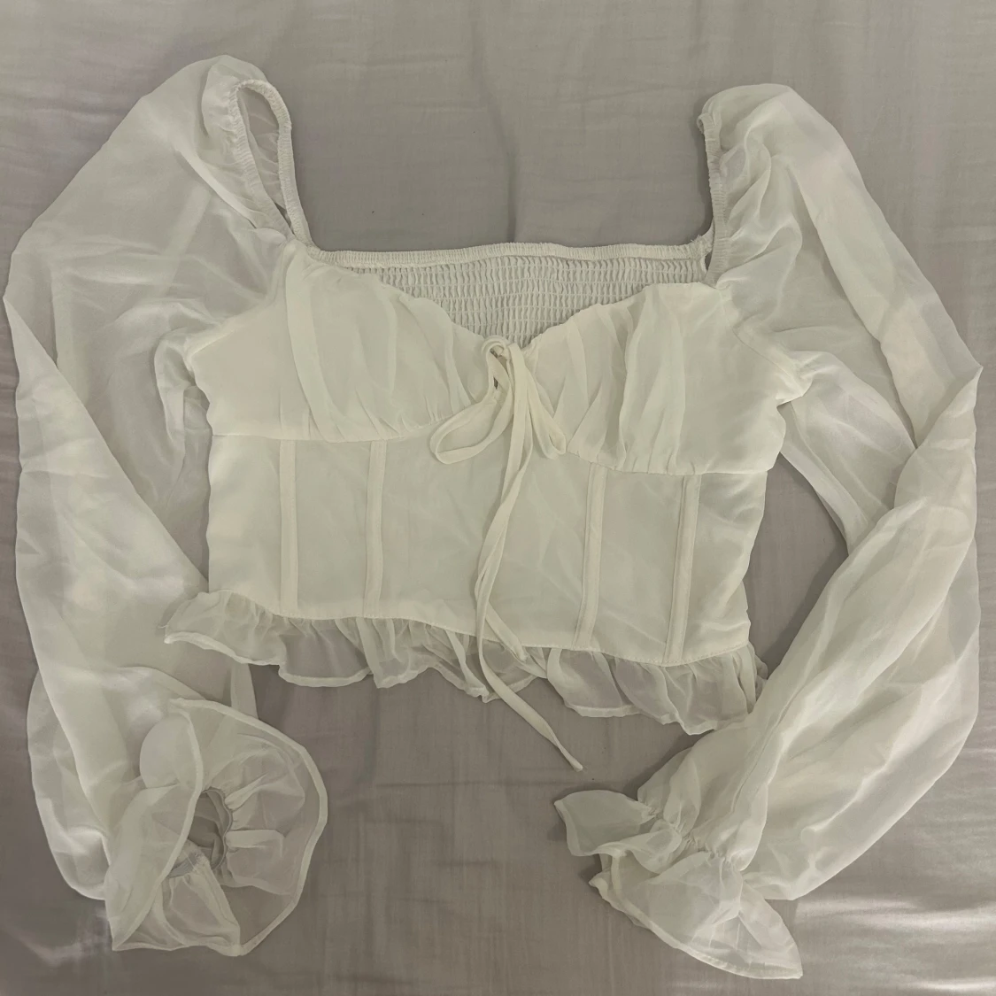 Säljes en super söt vit blus med volang detaljer, köpt från shein för nått år sedan men har aldrig blivit använd.