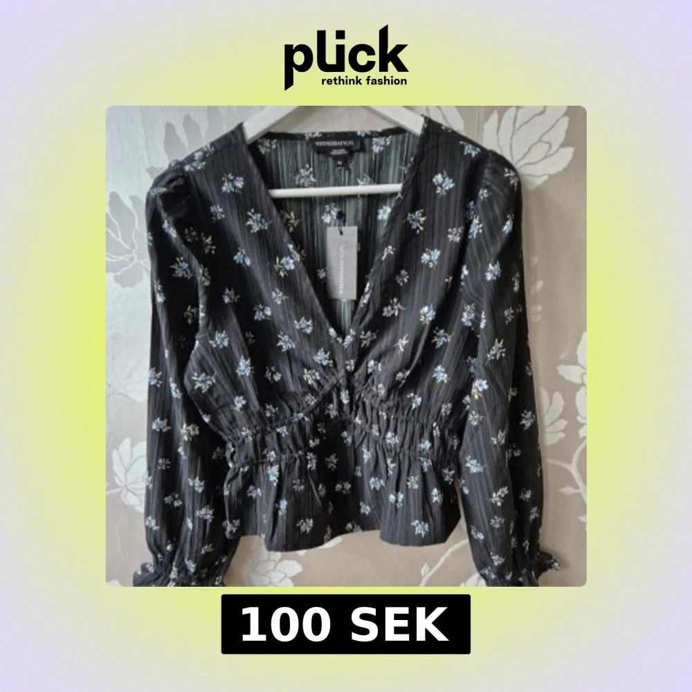 Svart blommig omlottblus från WEDNESDAYSGIRL