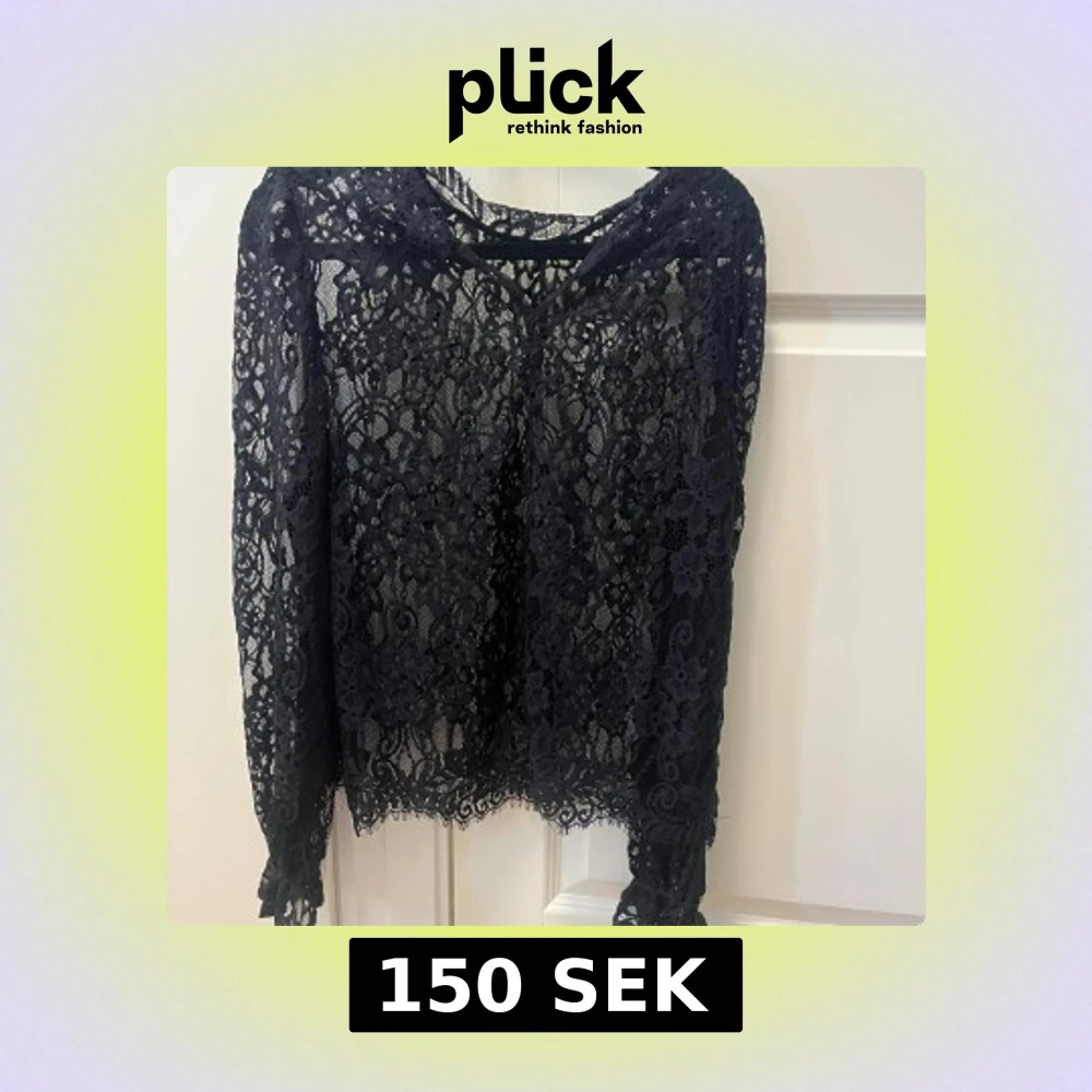 Säljer en svart blus i genombruten spets med blommigt mönster. Blusen har långa ärmar och rund halsringning. Perfekt för dig som vill ha en elegant och trendig look med mycket detaljer. Spetsen ger en lyxig känsla och blusen är lätt att styla till olika outfits.