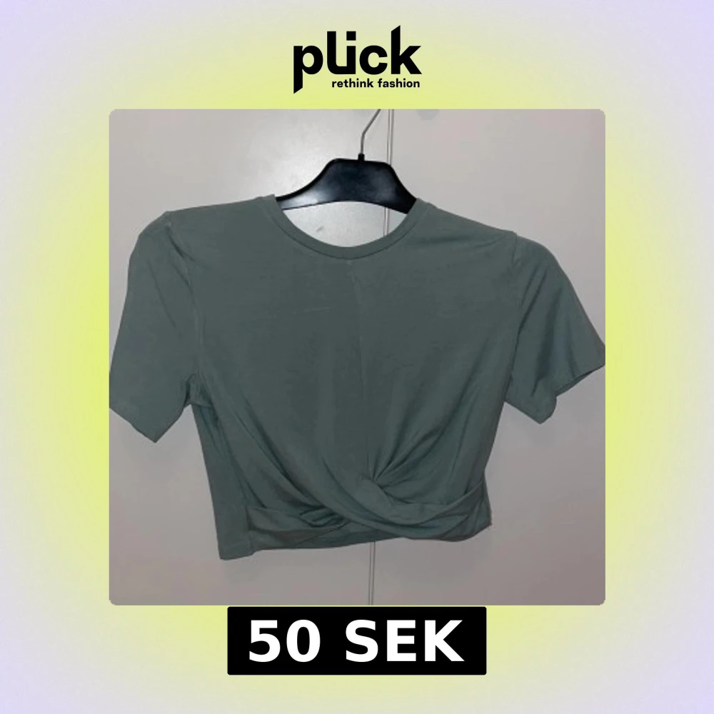 Snygg croppad topp i dämpad grön färg från H&M Divided. Toppen har korta ärmar, rund halsringning och en twistad detalj framtill. Aldrig använd i fint skick 🩷