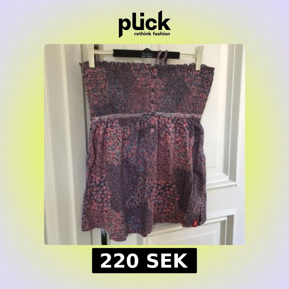Säljer en söt blommig topp/klänning från edc i rosa och lila toner. Klänningen är axelbandslös med en smockad överdel och ett fint blommönster. Perfekt för varma dagar!