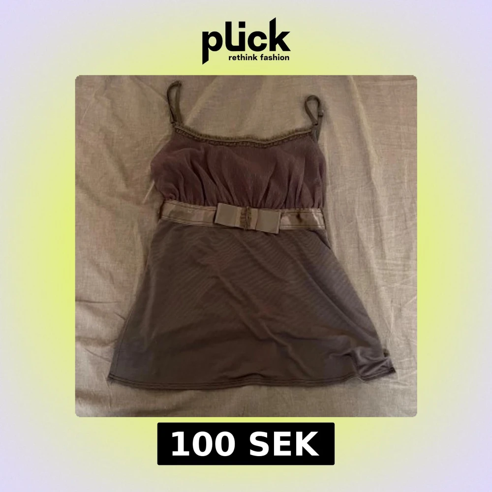 ett brunt/olivgrönt linne med spets och rosett detalj! köpte på vinted men passade inte mig så säljer vidare🩷