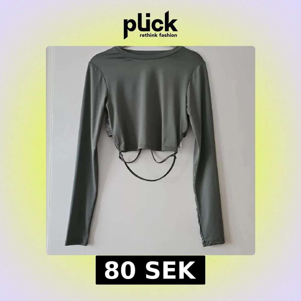 Snygg grågrön croppad topp från FB Sister med långa ärmar och coola snörningsdetaljer i midjan. Toppens material är mjukt och stretchigt, perfekt för en trendig look. Passar dig som gillar stilrena plagg med en twist.