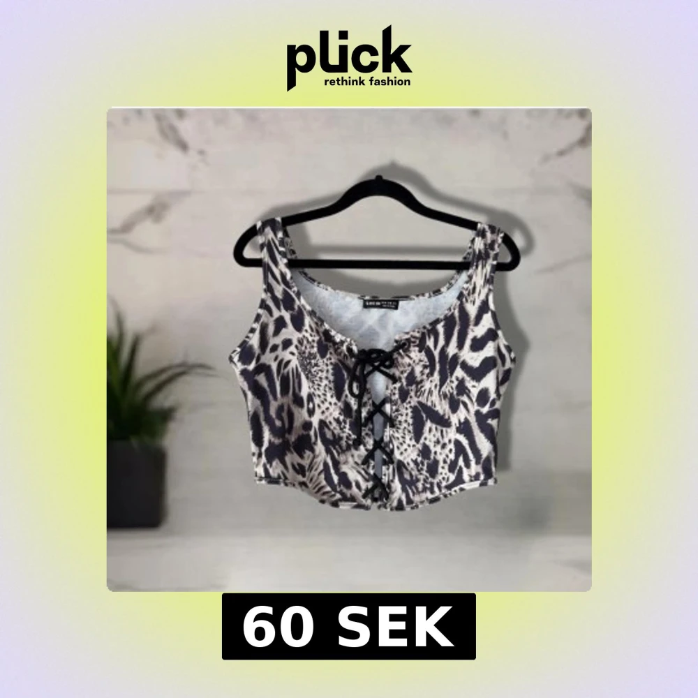 Cool croppad topp med leopardmönster i svart och beige. Toppen har snörning framtill och breda axelband.