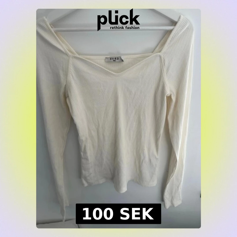 Säljer en vit ribbad topp från NAKD med v-ringad hals och långa ärmar. Toppen har en slim passform perfekt för att styla med jeans eller kjol.