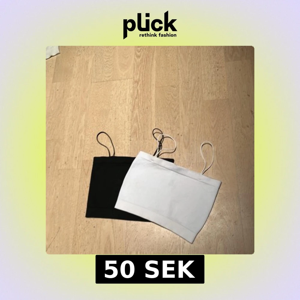 Två stilrena bandeau tubtoppar i svart och vit med smala axelband. Perfekt för att skapa en clean och enkel look. Materialet känns mjukt och stretchigt, vilket gör dem sköna att bära. Snygga att matcha med jeans eller kjol för en trendig vibe. Båda kommer med köpet!