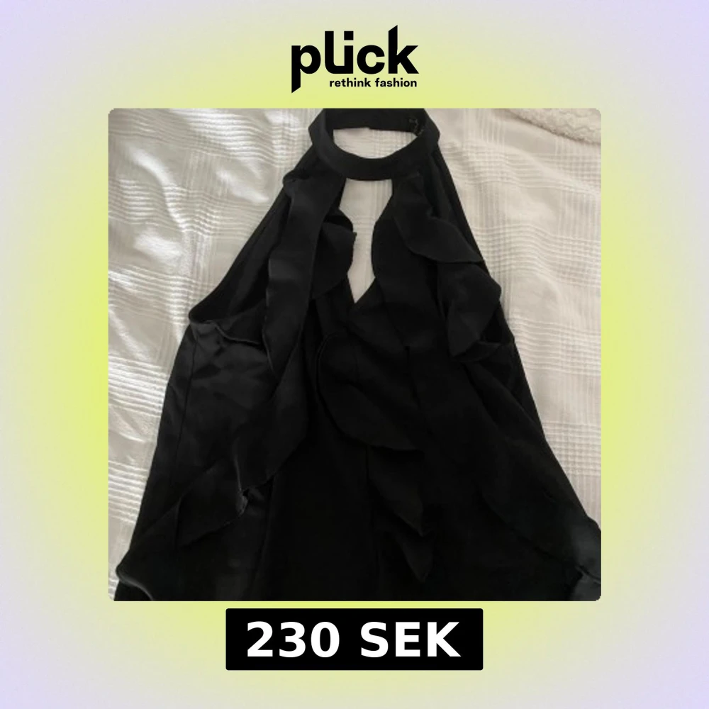 Svart halterneck blus med volang