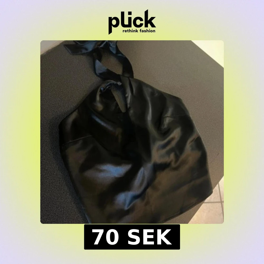 Snygg svart axelväska i glansigt satinmaterial med unika knytband upptill och framtill. Väskan har en mjuk, slouchy form och passar perfekt för dig som gillar stilrena accessoarer med en twist. Perfekt storlek för dina viktigaste grejer.