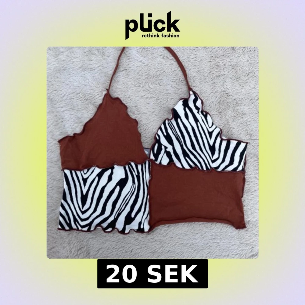 Unik linnetopp med patchwork-design i brun och svartvit zebramönstrad bomull. Toppen har vågiga kanter, smala axelband och cool asymmetrisk form. Perfekt för dig som vill sticka ut med en edgy och trendig look.