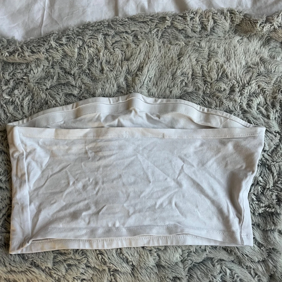 Säljer en enkel och stilren vit tubtopp från 157. Perfekt för varma sommardagar eller som ett basplagg i garderoben. Toppen är i mjukt material och har en bekväm passform.