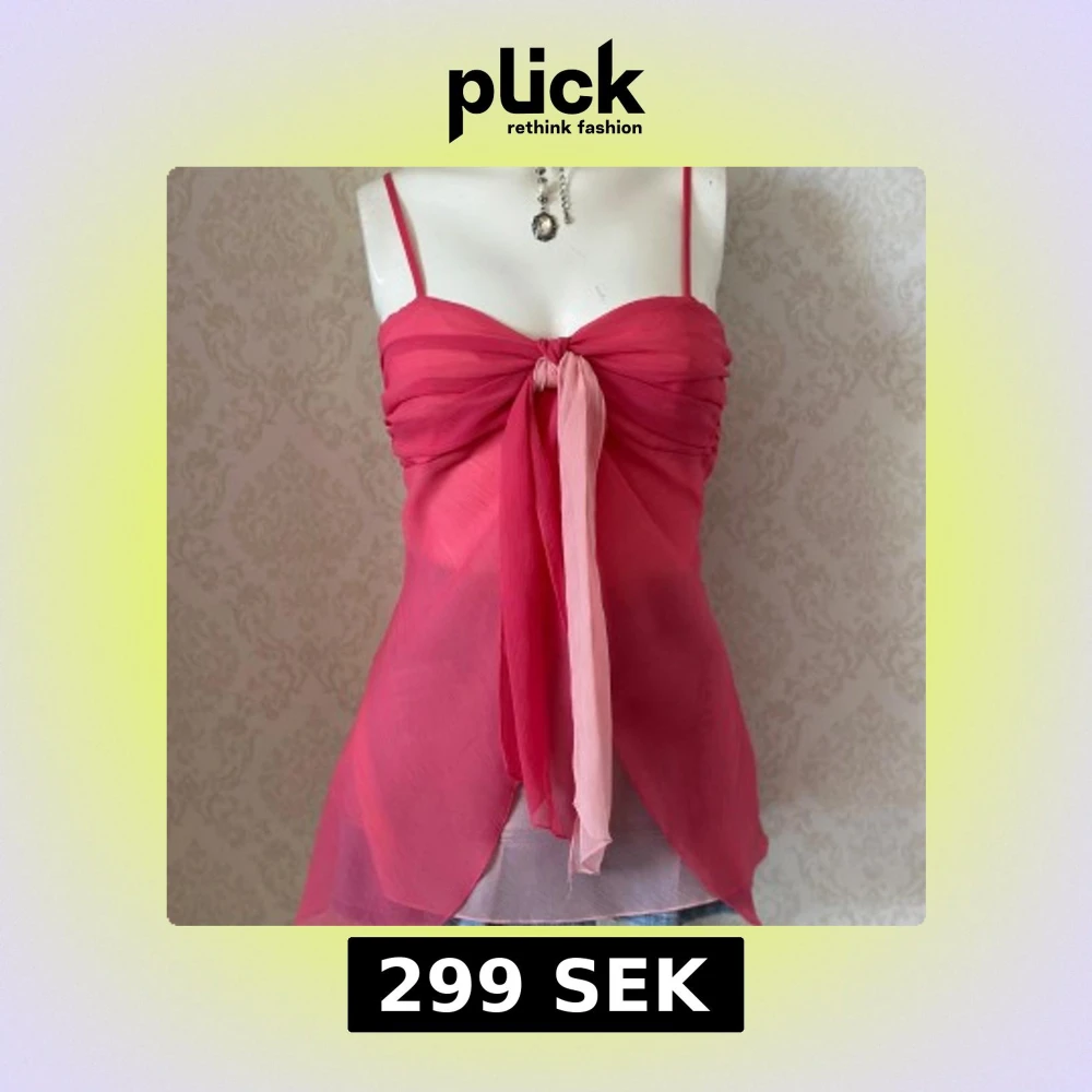 Supersöt rosa linnetopp med tunna axelband och stor rosett framtill. Toppen har omlottkänsla och två olika nyanser av rosa i rosetten. Luftigt material och lätt utsvängd nertill.